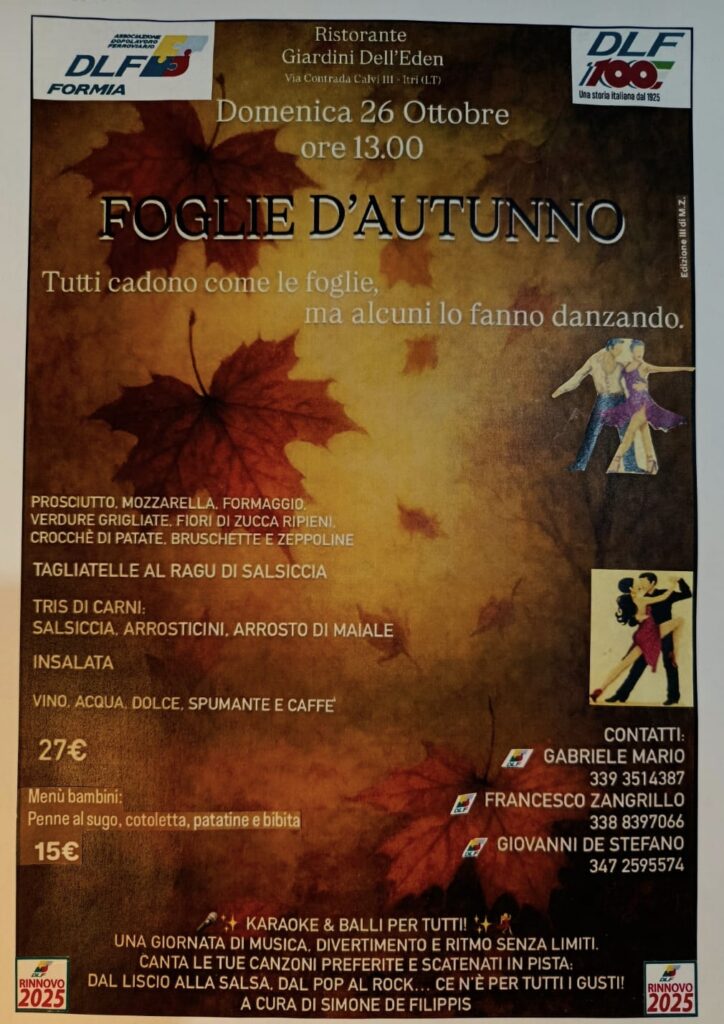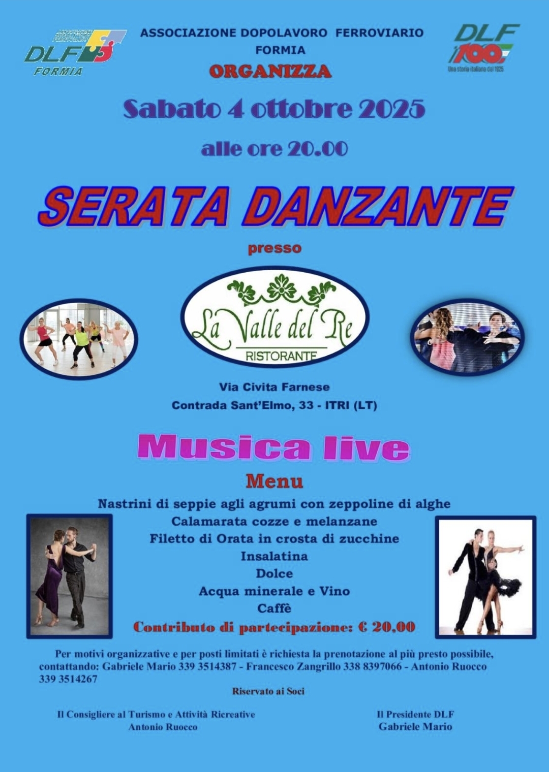 Organizza: Giovanni De Stefano 3472595574 Dopolavoro Ferroviario di Formia.